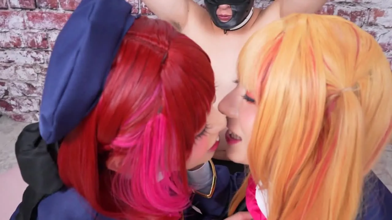 【欲しがりレイヤー貪欲3P】目隠し戦闘員の前で濃厚キス!でも疼いたケツアナにはやっぱりデカチン欲しさ - FC2 Video