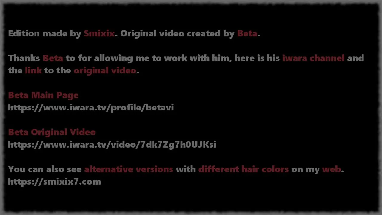 12 ALTERNATIVE COLORS VERSIONS ON MY WEBSITE: https://smixix7.com/series/virtual-youtuber/hoshimachi-suisei-undress-dance-hololive-hentai-vtuber ✅ ORIGINAL VIDEO: https://www.iwara.tv/video/7dk7Zg7h0UJKsi ORIGINAL AUTHOR: https://www.iwara.tv/profile/betavi > PROJECT FEATURES - Videos in the Project: 12 - Duration per video: 02:42 mins - Weight per video: 161 MB - Project Weight: 1.89 GB - Video quality: 1920 x 1080p - Video format: MP4 - Bit Rate: 8k 60FPS This is a color edition with permission from the original author where I can edit, publish and monetize the project. PS: If there was any misunderstanding with copyright, I have no problem deleting the video in less than 24 hours, just send me a private message to let me know, I try to get all the permissions before editing a video but errors can always arise, I ask understanding. Thank you so much.