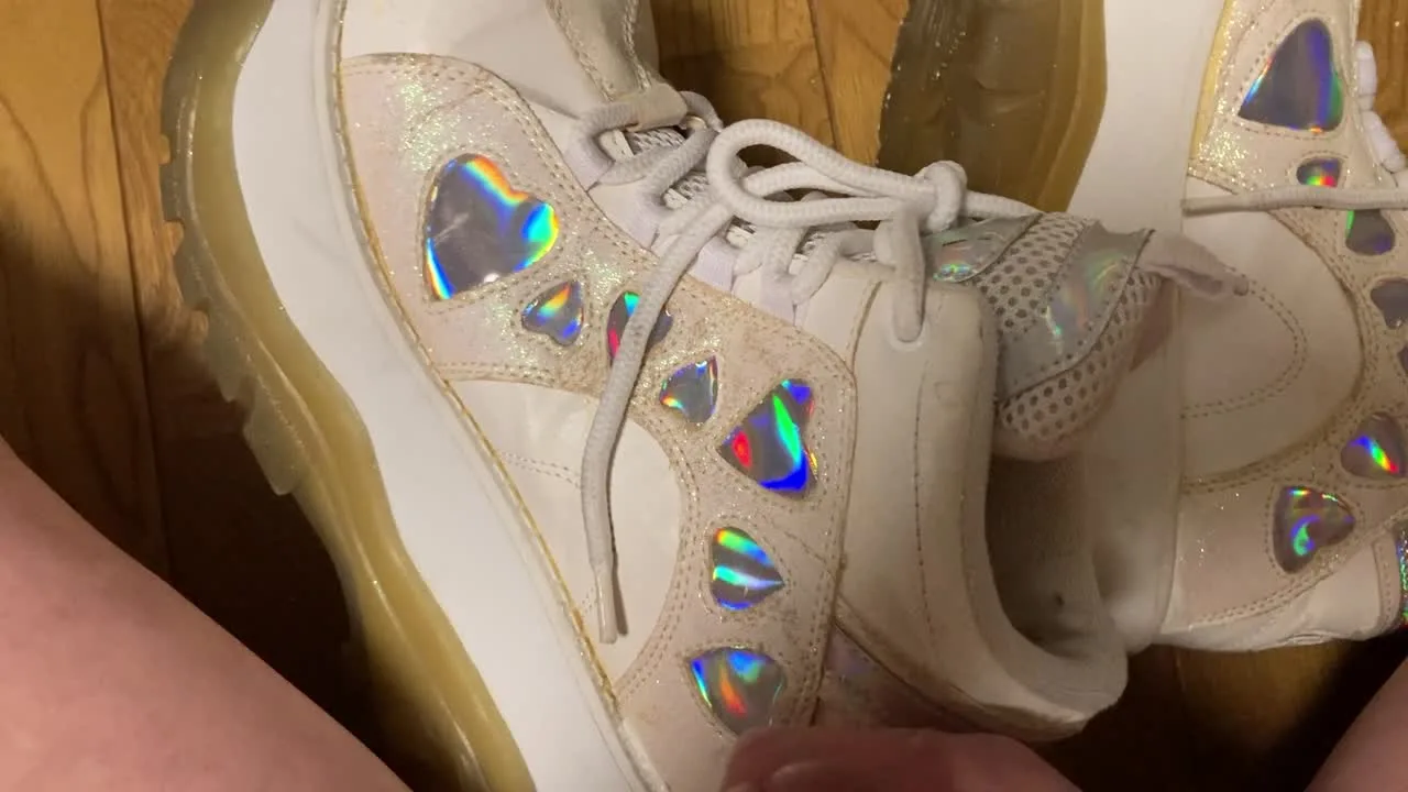 Y2Kギャルの厚底スニーカーにぶっかけ! 女の子特有の甘い濃厚な足の臭いに興奮して、最後はかわいいハートの部分に思いっきりぶっかけました!